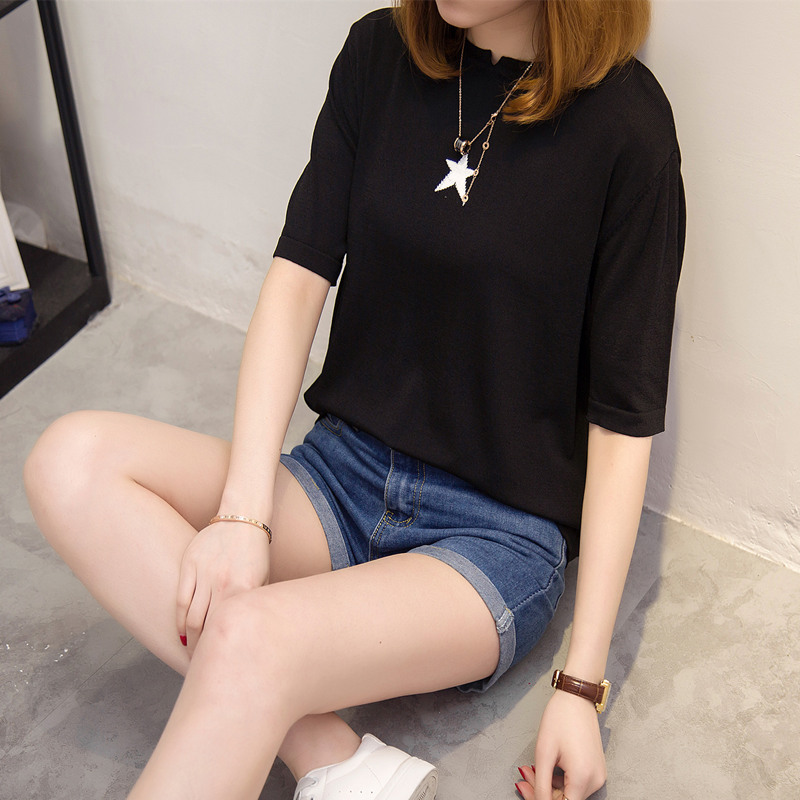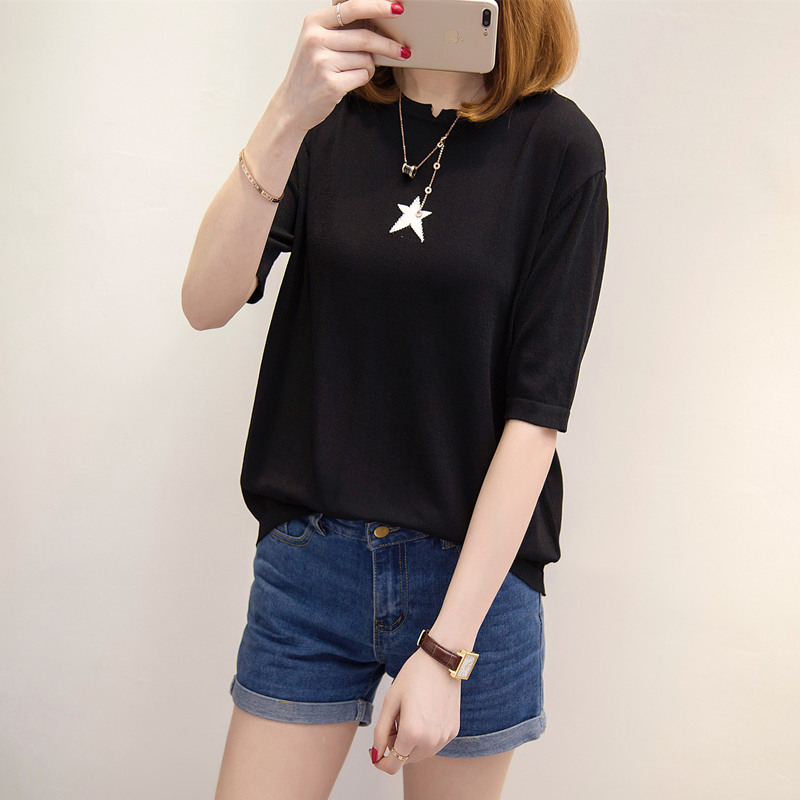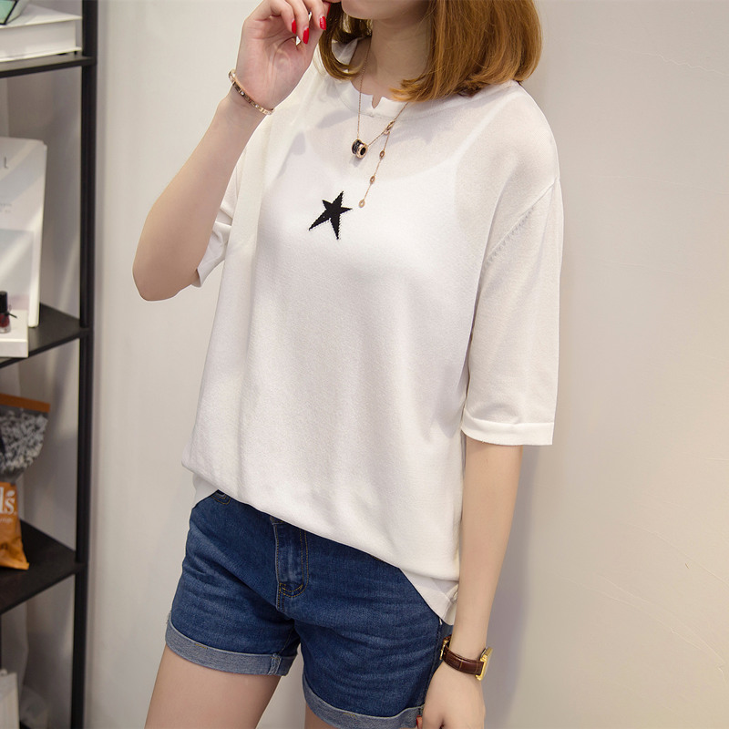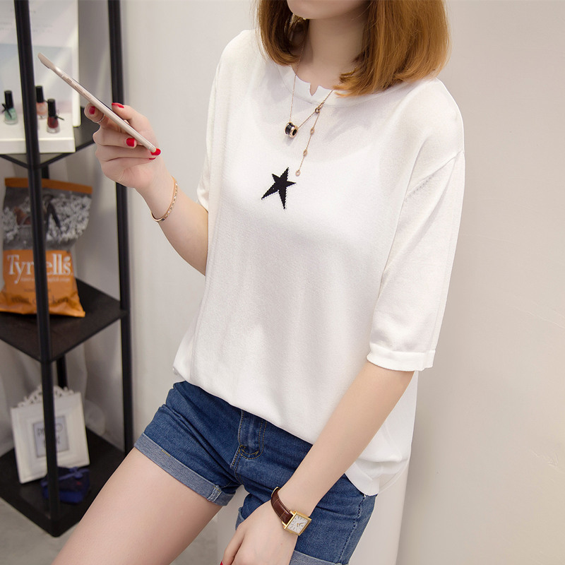 / 女裝夏裝新款潮白色短袖t恤女寬松韓版針織衫女春打底中長袖