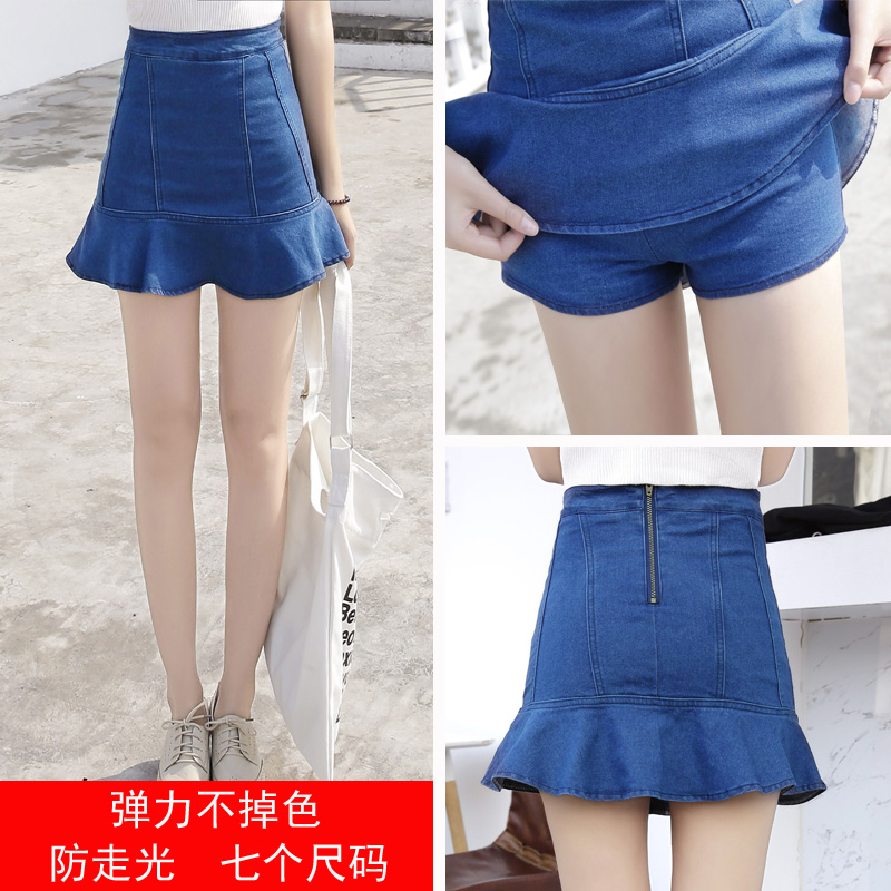 / 韓版大碼高腰牛仔半身裙女包臀短裙A字裙荷葉邊魚尾裙半裙褲裙夏