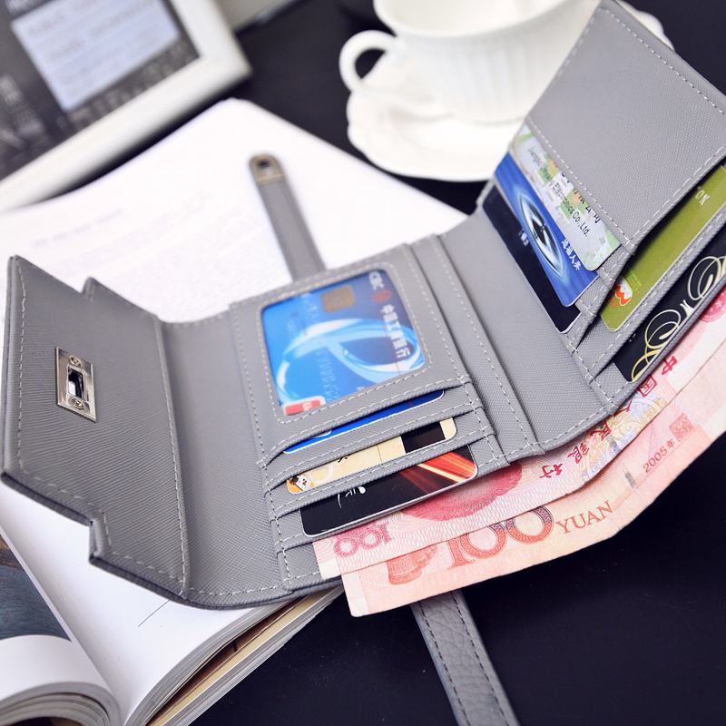 新款韓版復古安迪同款荔枝紋鎖扣女士短款錢包錢夾卡包潮手包