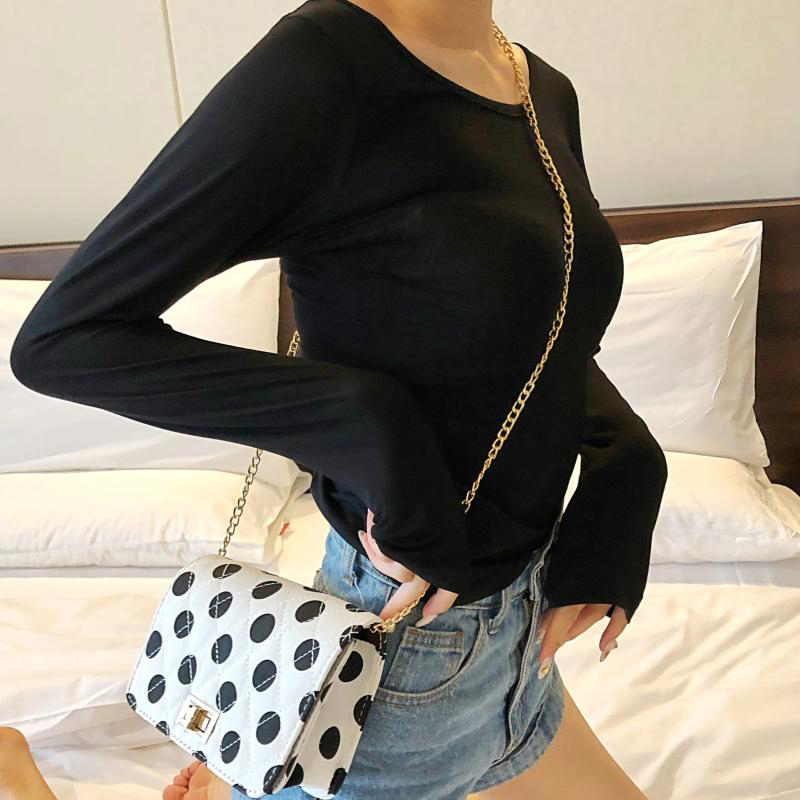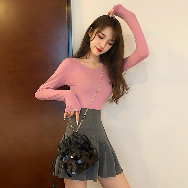 / 黑色打底衫女秋裝2018新款修身顯瘦學生長袖T恤心機短款緊身上衣