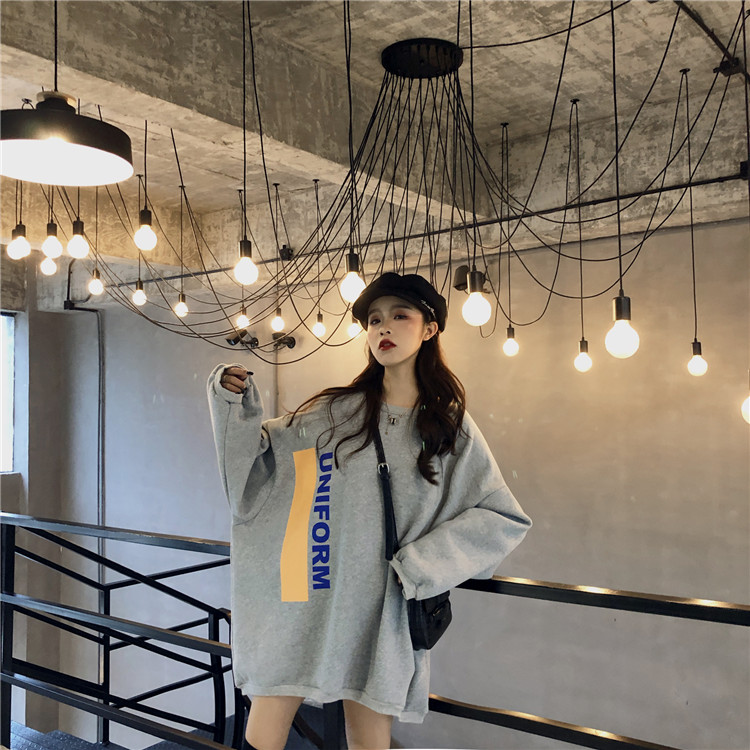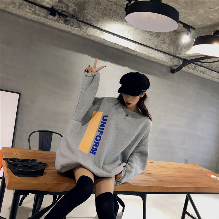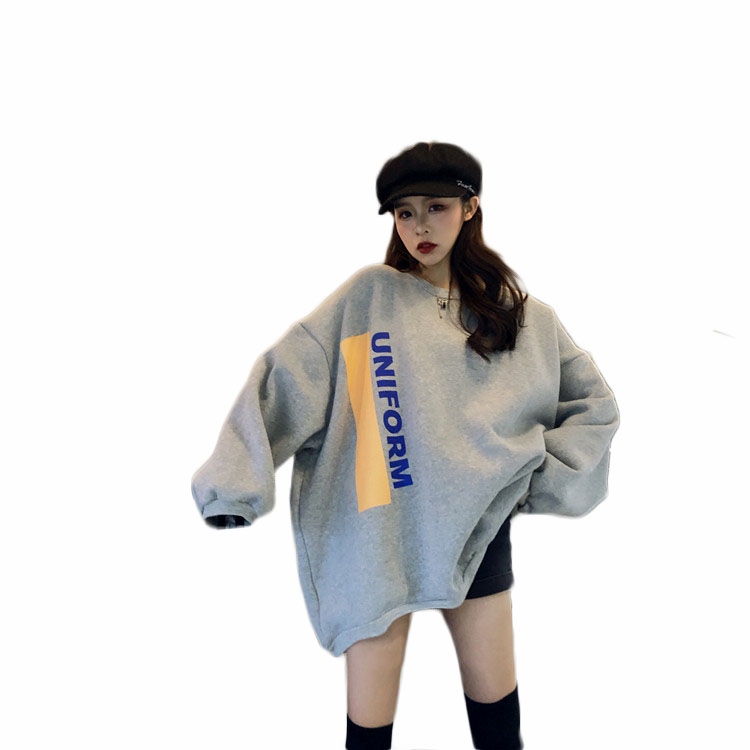 / 港風chic秋冬上衣慵懶衛衣女秋圓領oversize時尚印花英文加絨外套