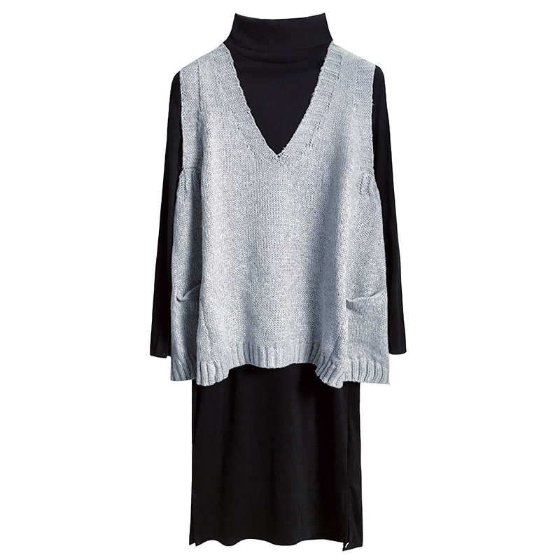 灰色馬甲|卡其馬甲|黑色連衣裙|灰色連衣裙