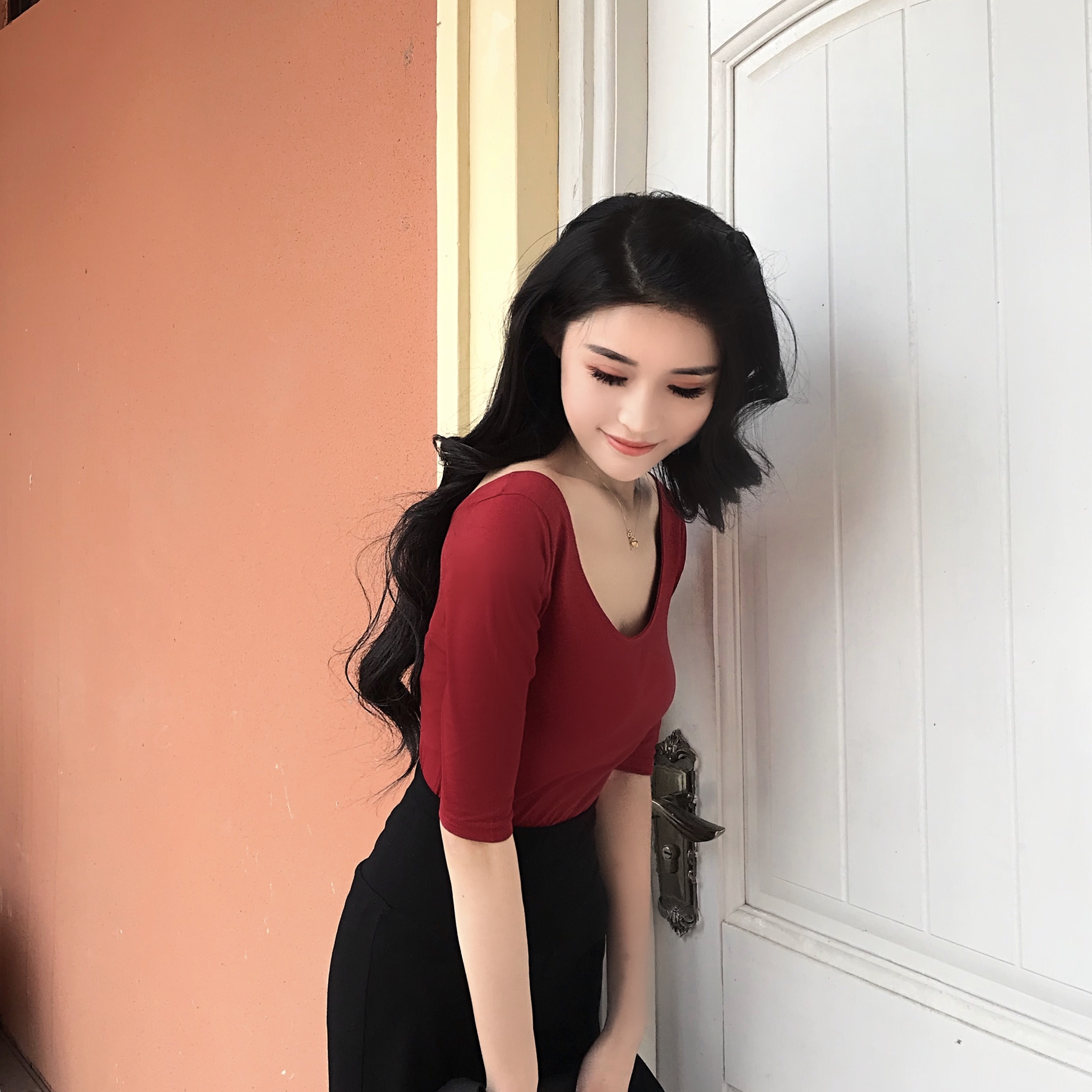 新款韓版復古chic芭蕾舞圓領純色百搭修身顯瘦小清新港味T恤上衣