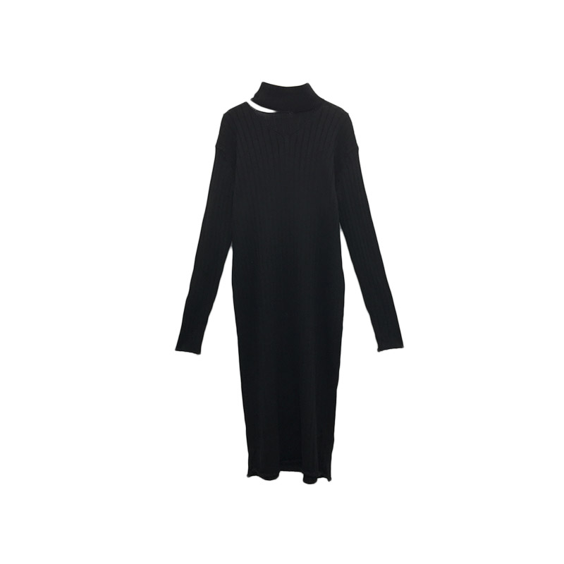 女秋裝2018新款裙子時尚韓版氣質高領修身顯瘦純色百搭長袖連衣裙