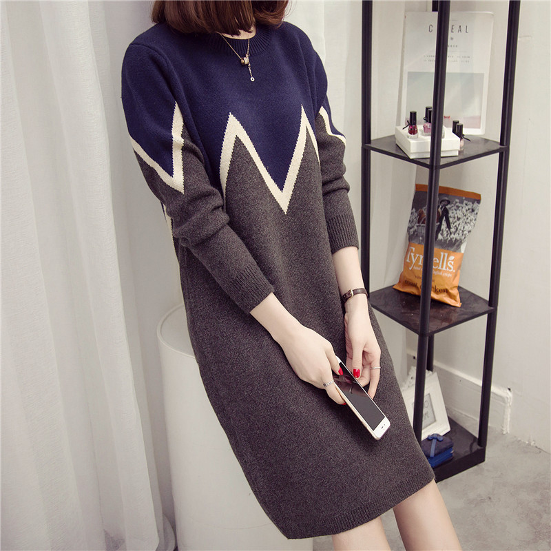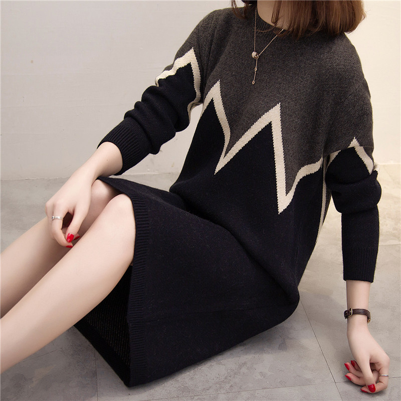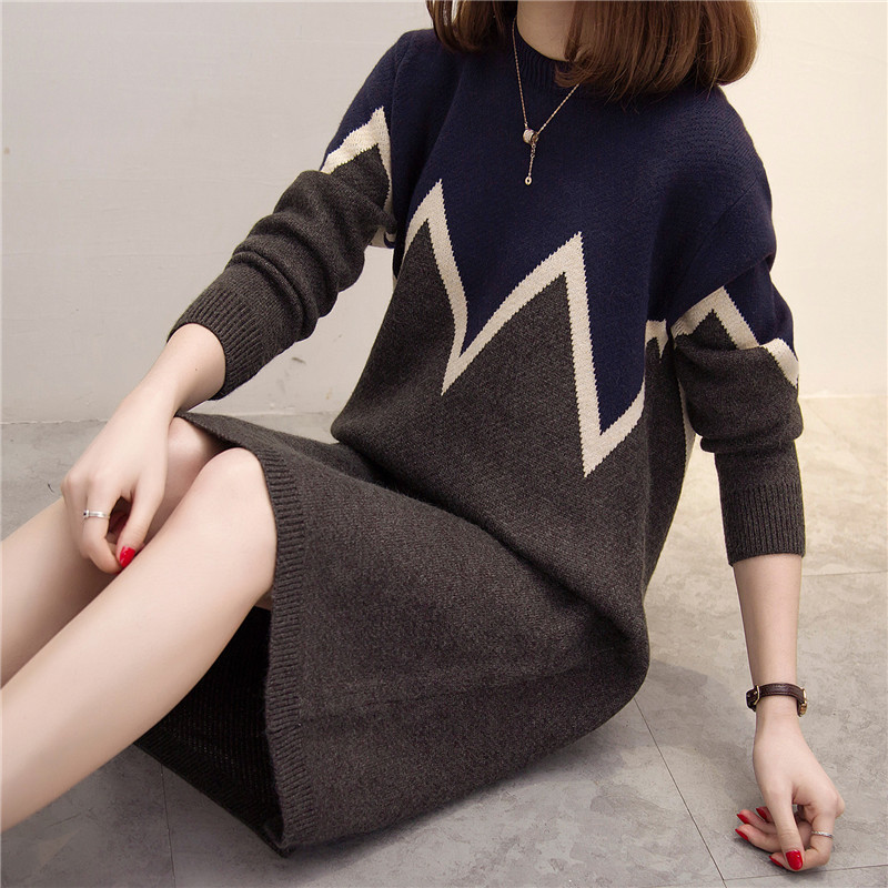 / 套頭毛衣女中長款秋冬加厚韓版寬松針織毛衣裙女裝冬裝新款潮