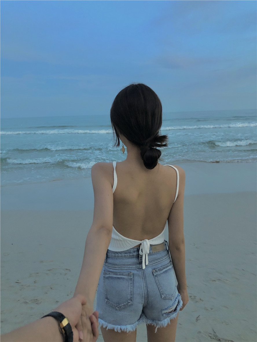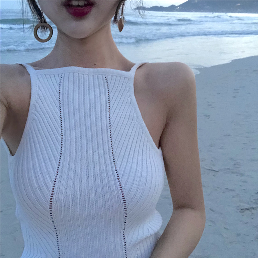 / 新款歐美chic風無袖大露背顯瘦氣質女人味針織百搭掛脖吊帶背心女