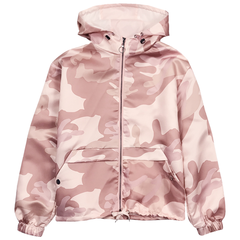 迷彩粉色外套女秋裝新款韓版寬松長袖連帽風衣學生休閑夾克上衣潮