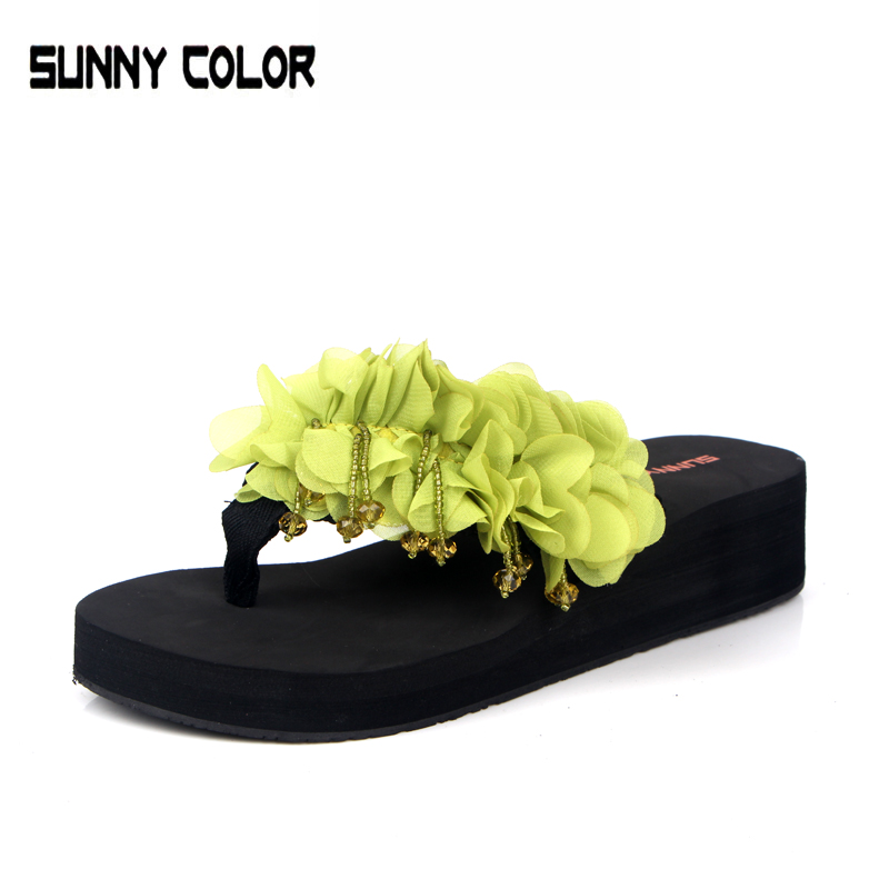 / 夏季夾腳人字拖 厚底松糕坡跟涼拖鞋 女士度假沙灘鞋