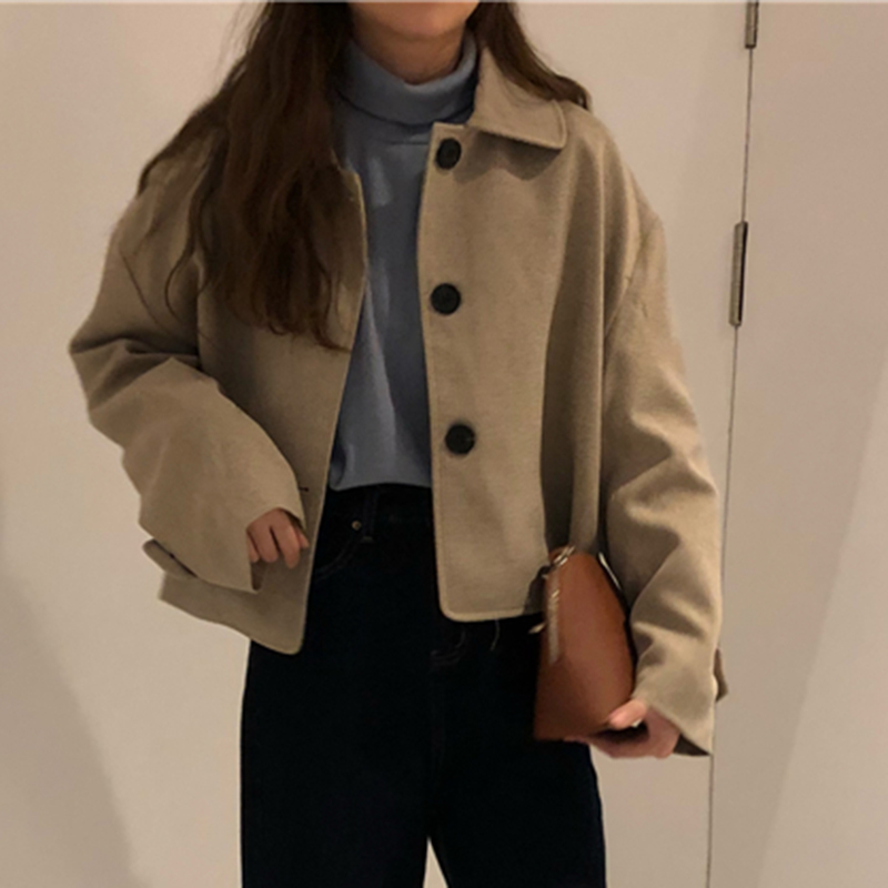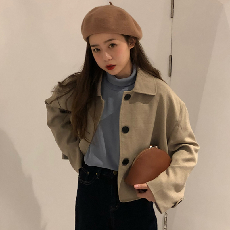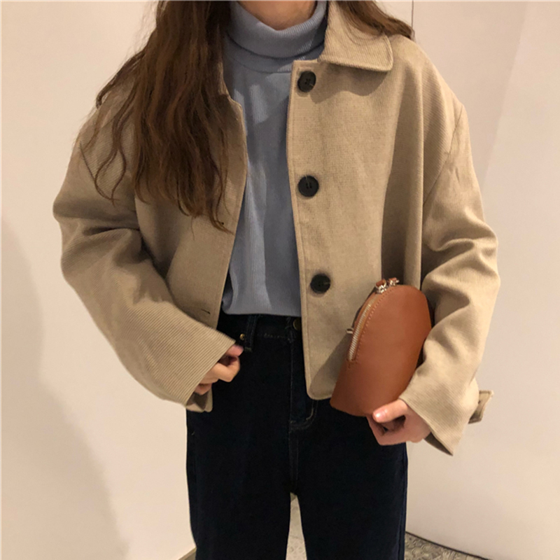 / 復古翻領短外套秋冬女裝2018新款港風小個子寬松開衫休閑長袖上衣