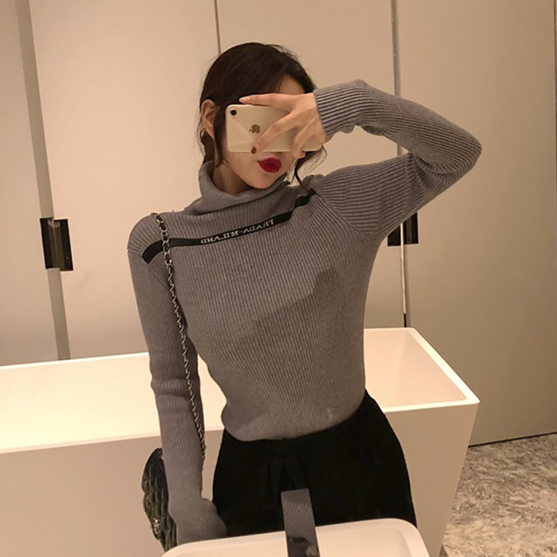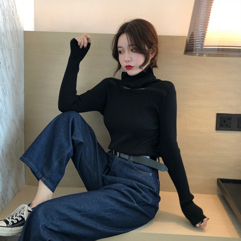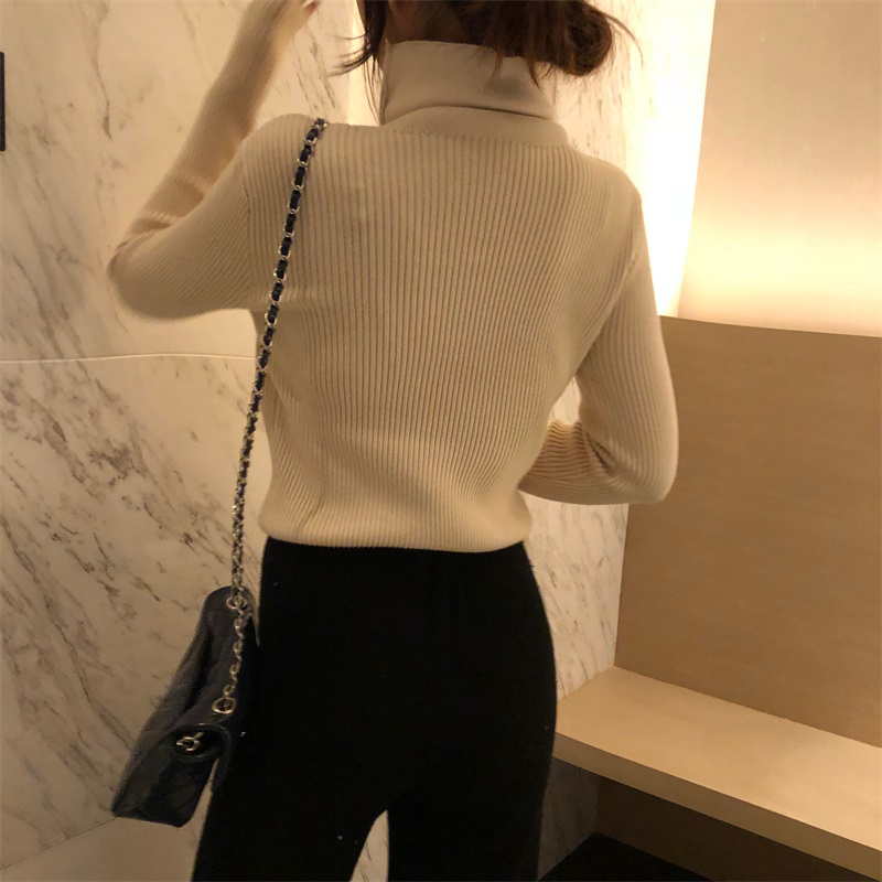 女冬裝2018新款韓版修身顯瘦長袖高領套頭毛衣學生百搭打底針織衫