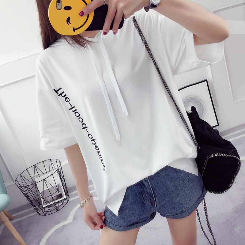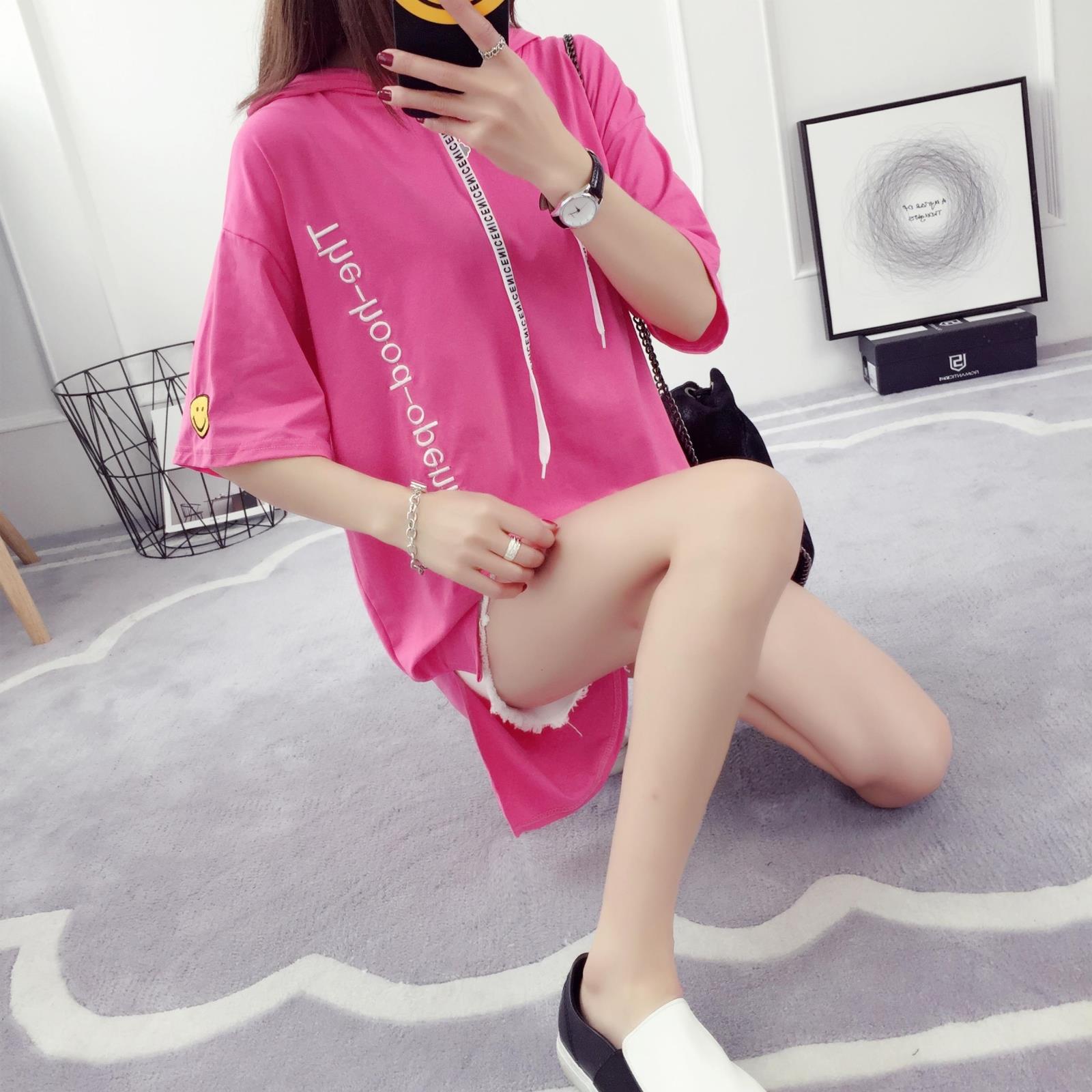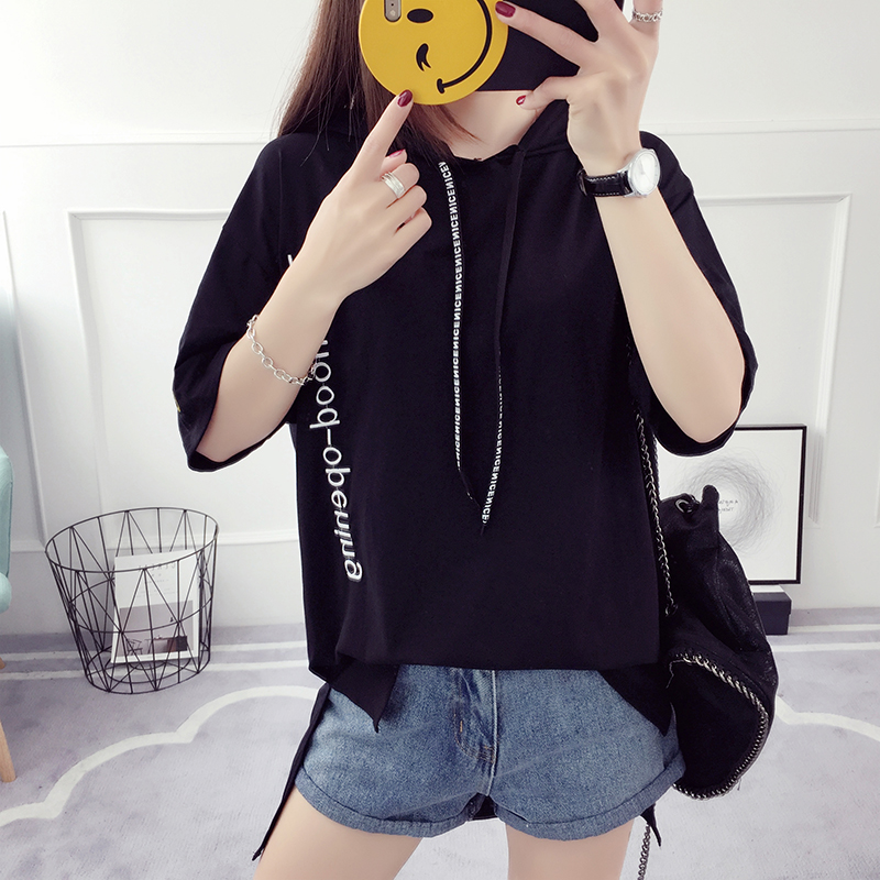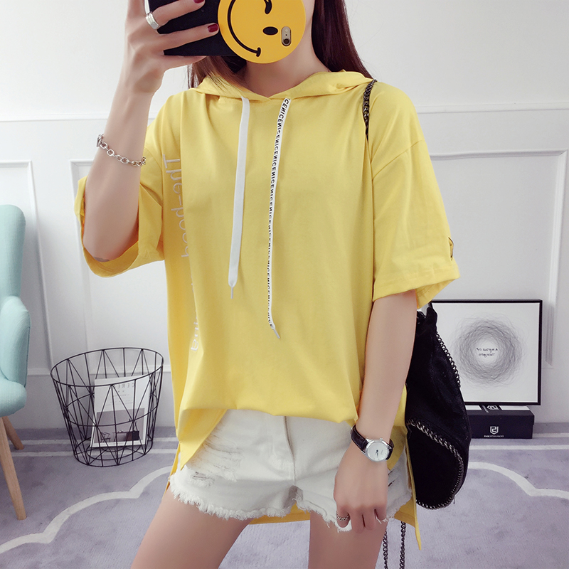 夏季短袖衛衣女韓版潮學生寬松薄款新款連帽套頭中長款兜帽衫