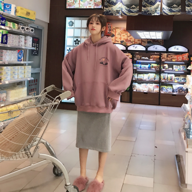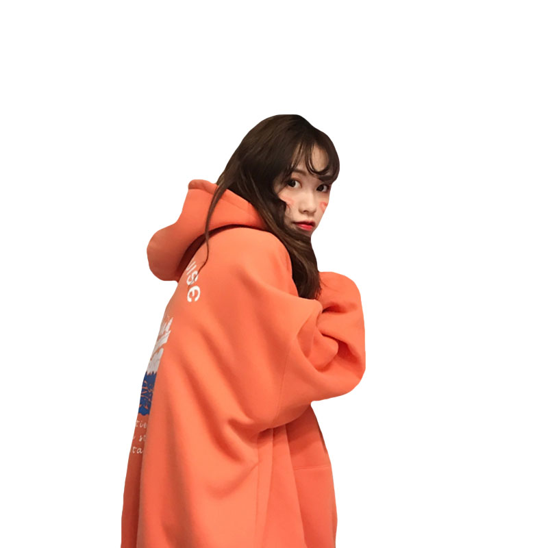 / 秋冬女裝韓版慵懶風寬松原宿風卡通字母加絨加厚連帽衛衣上衣外套