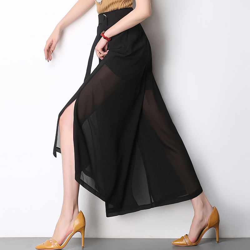/ 雪紡闊腿褲女九分褲新款夏季裙褲寬松休閑褲高腰薄款大碼褲裙甩褲