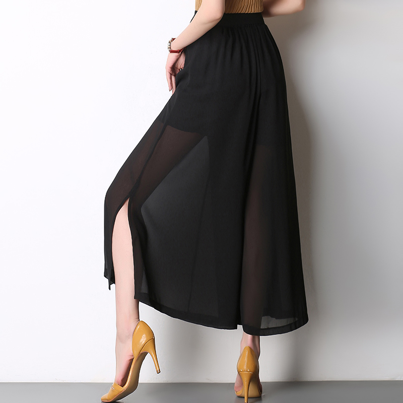 雪紡闊腿褲女九分褲新款夏季裙褲寬松休閑褲高腰薄款大碼褲裙甩褲