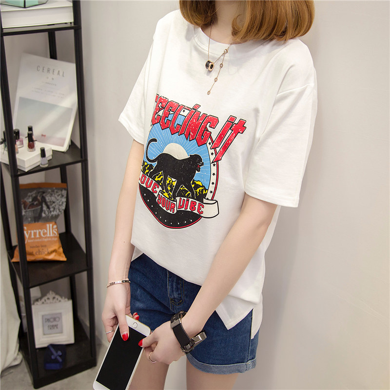 短袖女t恤韓版字母上衣圓領寬松學生體恤衫夏季新款上衣女t恤