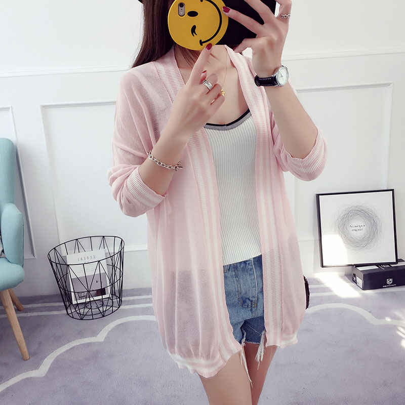 冰絲針織衫開衫女短款夏季薄款外套防曬衫外搭韓版寬松刺繡空調衫