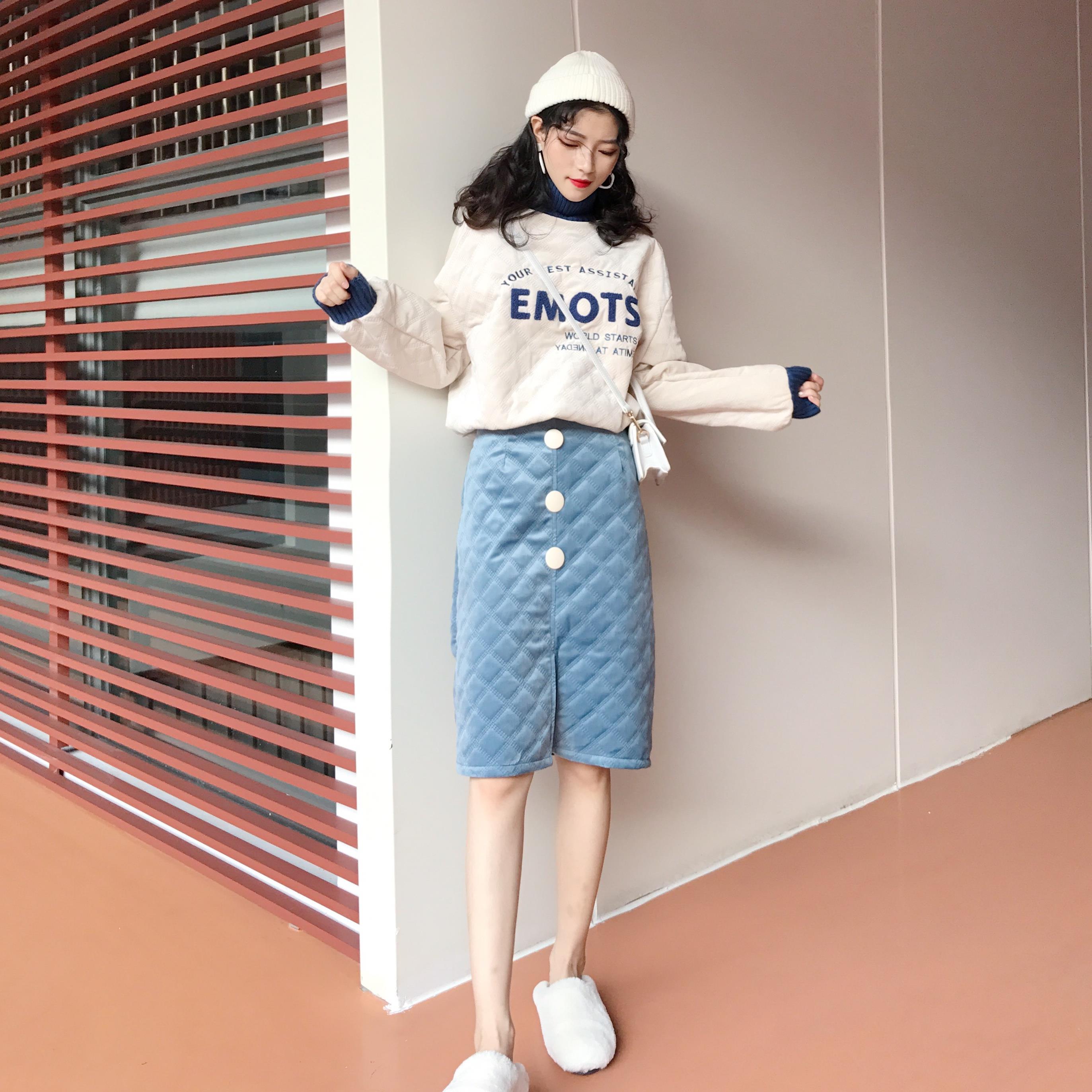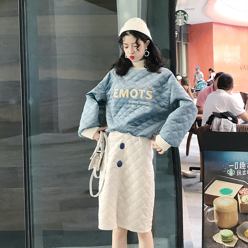 / 2018秋冬季韓版百搭新款兩件套時尚夾棉加厚衛衣包臀半身裙套裝女