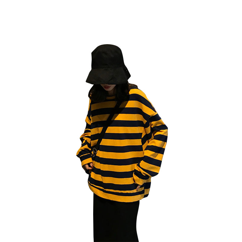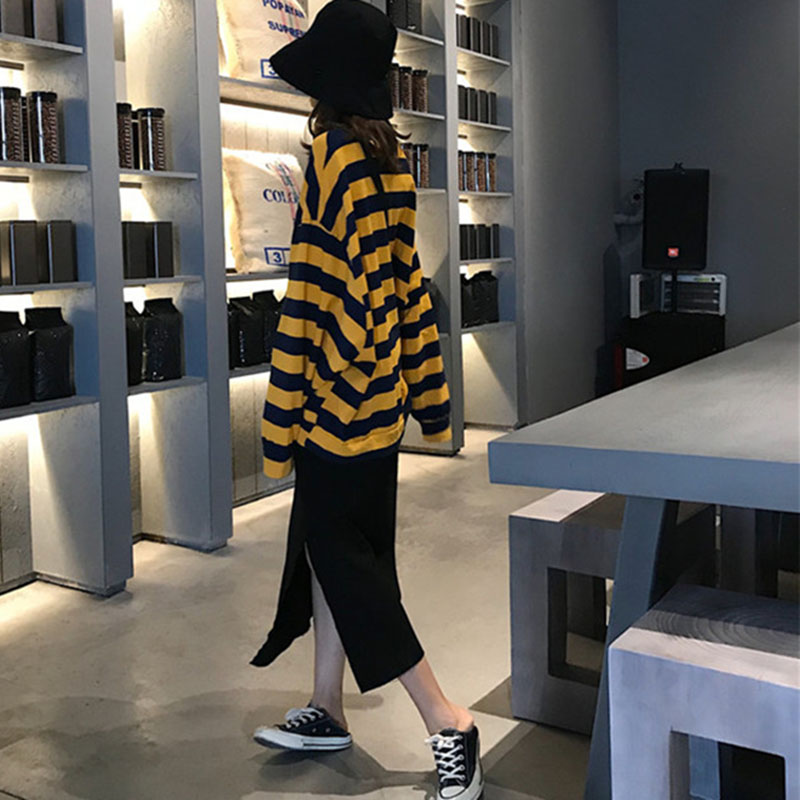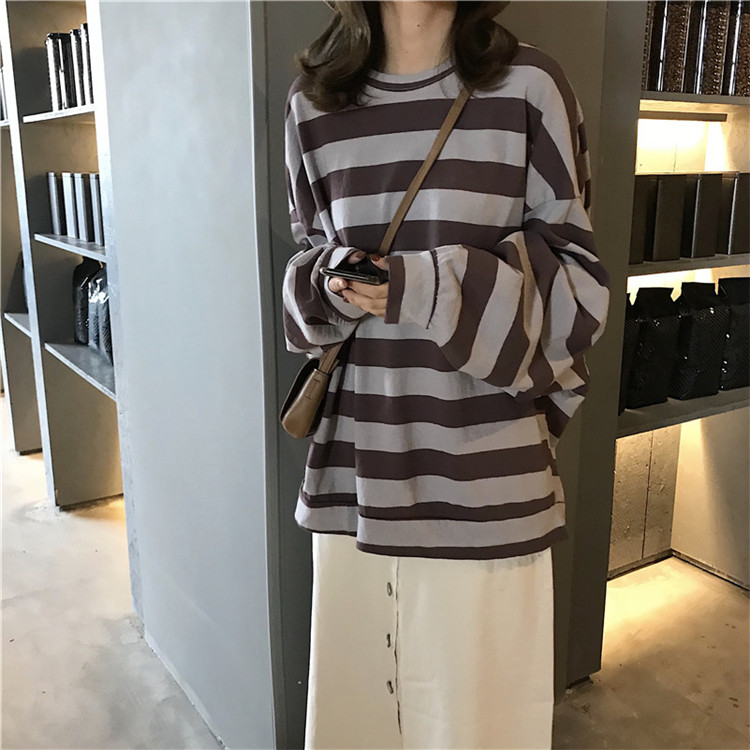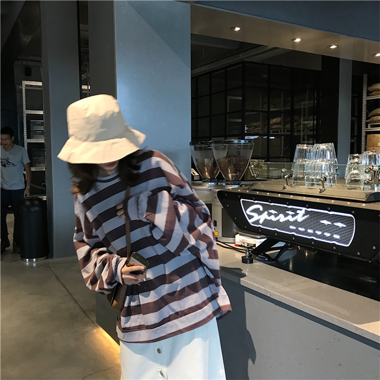 / chic早秋上衣慵懶韓版2018新款寬松顯瘦寬條紋薄款長袖套頭衛衣女