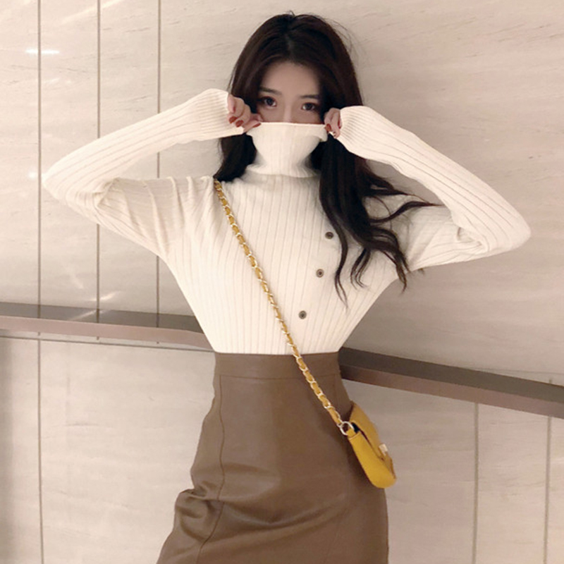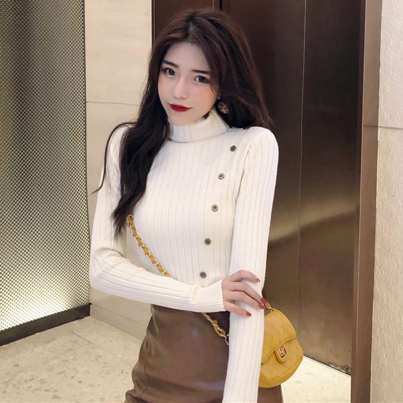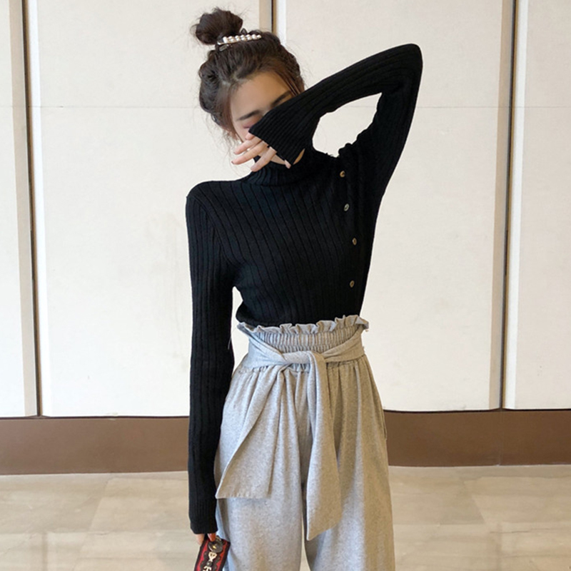 / 韓版高領修身顯瘦打底針織衫女秋冬裝新款黑色長袖T恤時尚上衣潮