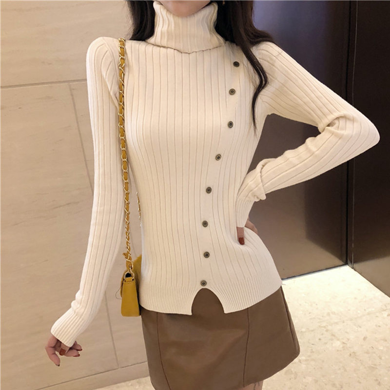 韓版高領修身顯瘦打底針織衫女秋冬裝新款黑色長袖T恤時尚上衣潮