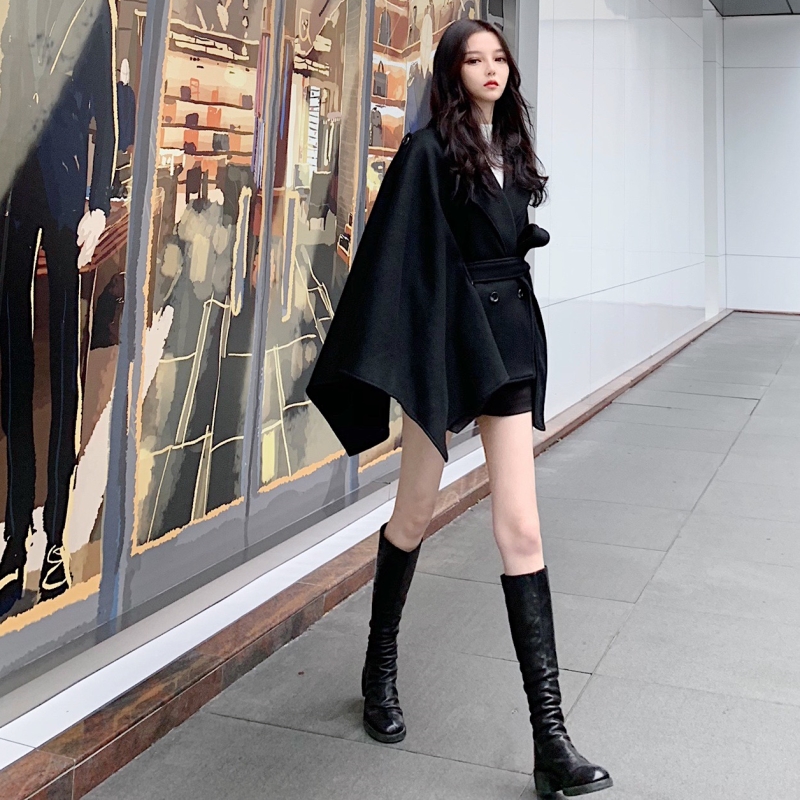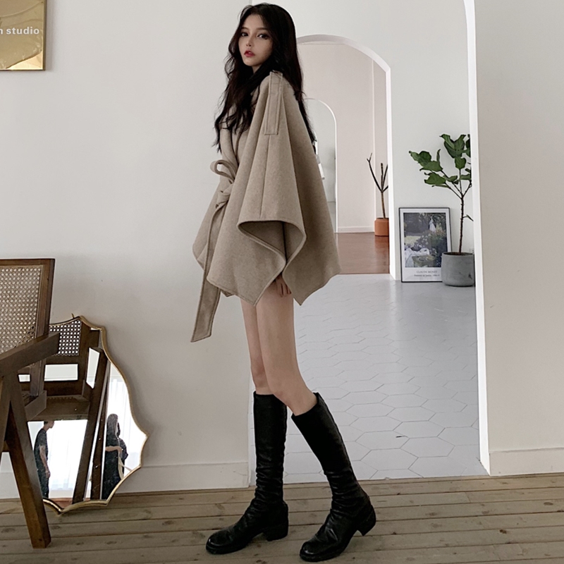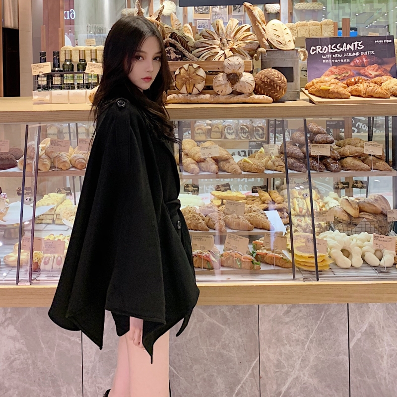 復古早秋chic外套女春秋2018新款韓版百搭款寬松斗篷披肩毛呢外套