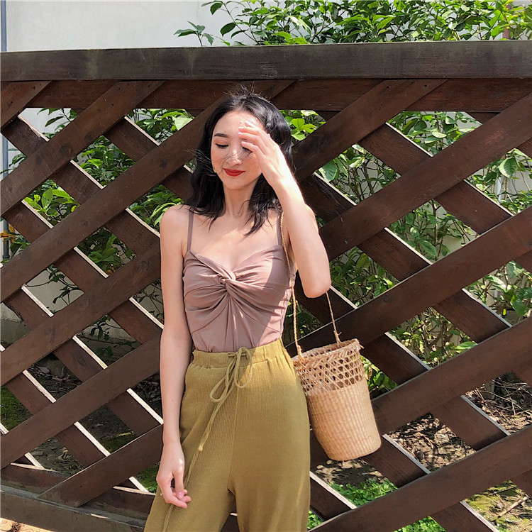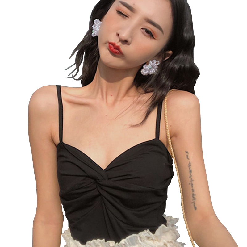 韓版時尚秋裝女2018新款百搭款內搭外穿都好看的交叉帶胸墊小吊帶