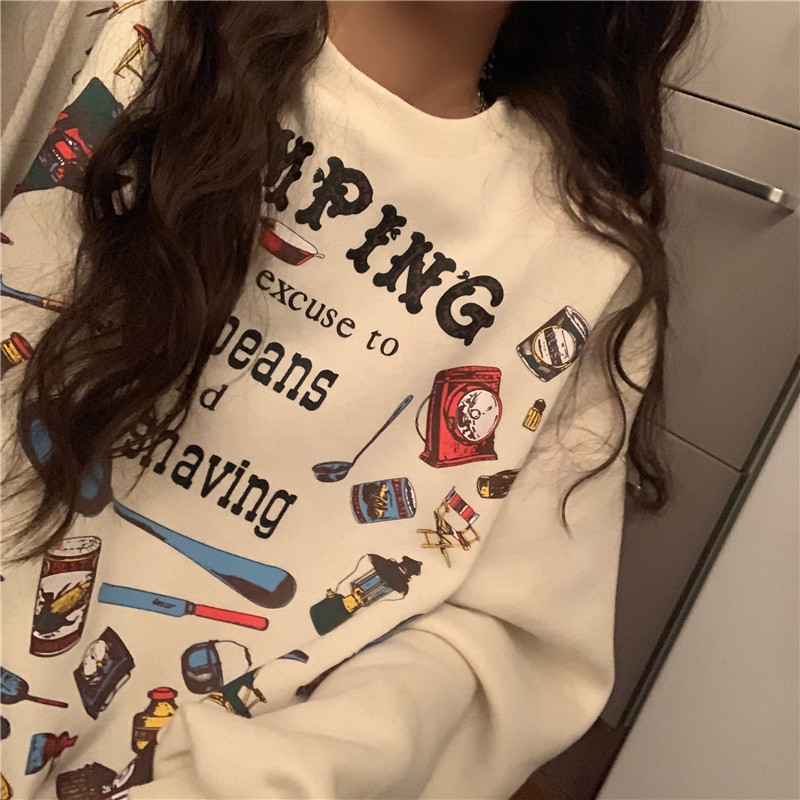chic上衣慵懶風寬松衛衣女秋冬2018新款百搭涂鴉小怪獸加絨衛衣潮