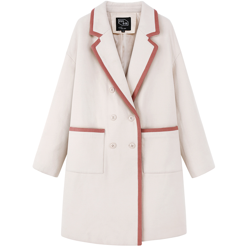 MG小象復古毛呢外套女中長款寬松學生冬季新款2018流行呢子大衣潮