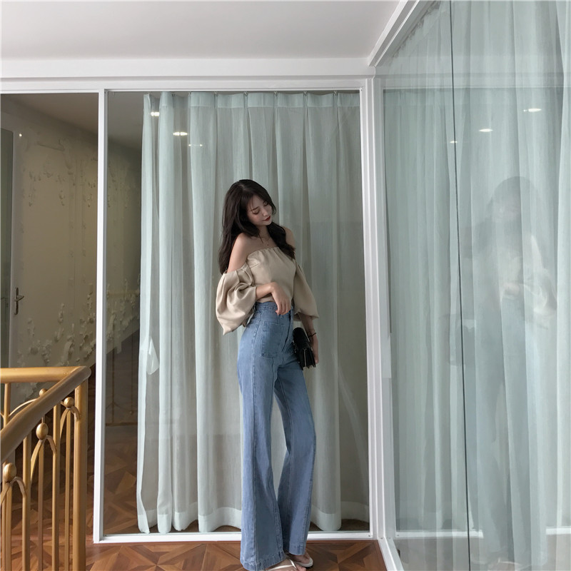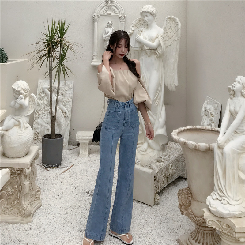 / 新款韓版百搭chic小清新氣質時尚復古高腰顯瘦顯高闊腿喇叭牛仔褲
