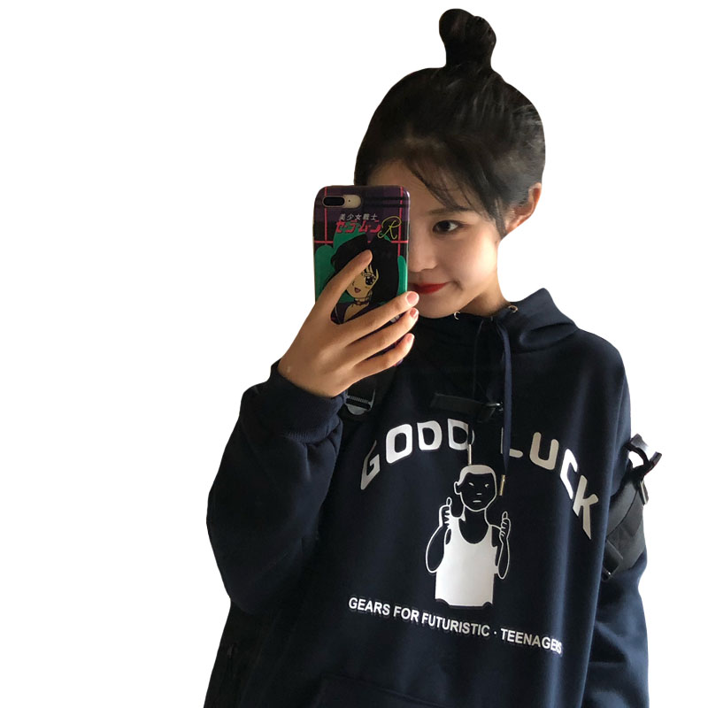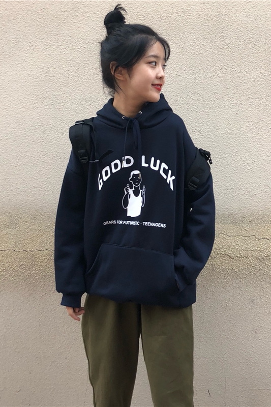 / 韓版時尚休閑套裝秋冬女裝原宿風加絨連帽衛衣+工裝直筒褲兩件套