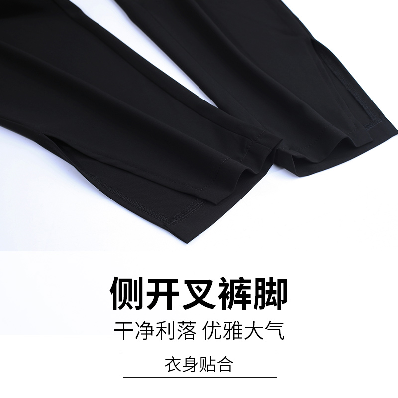 / 黑色小腳褲女夏季休閑百搭九分褲時尚開叉褲子韓版顯瘦煙管褲