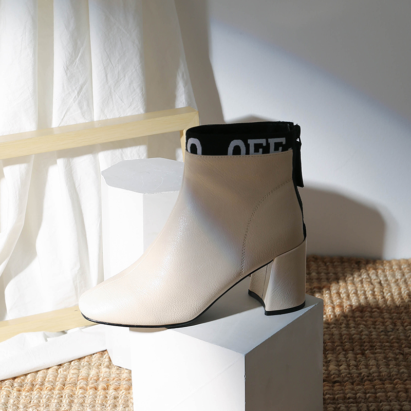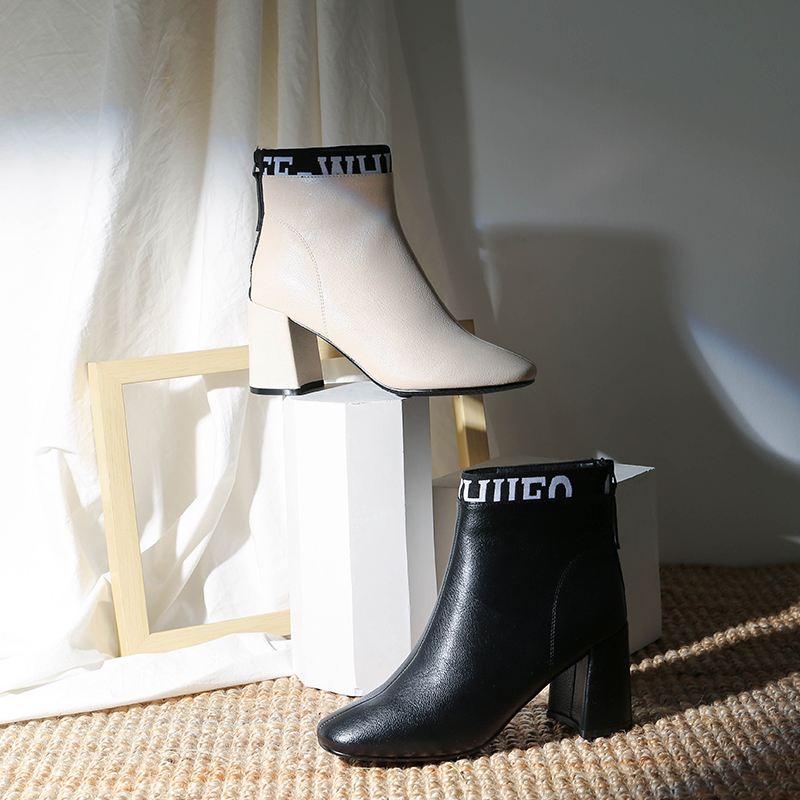 / MG小象時尚高跟馬丁靴女冬季2018新款粗跟尖頭皮鞋保暖加絨短靴潮