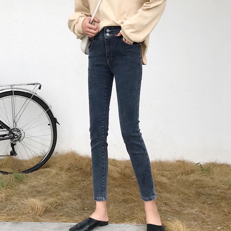/ 修身牛仔鉛筆褲秋裝女2018新款韓版高腰顯瘦緊身小腳褲九分褲子潮