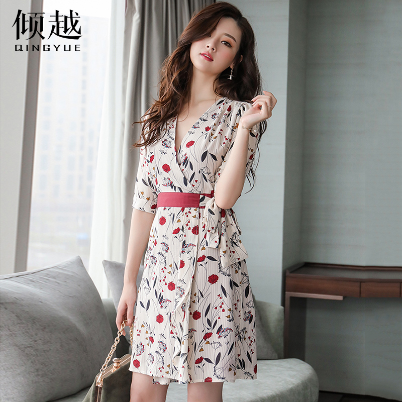 / 小碎花V領雪紡連衣裙印花心機裙子2017新款夏田園小清新韓版仙女