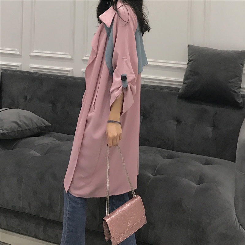 / 寬松長袖風衣女中長款秋冬裝新款韓版chic學生時尚外套拼色大衣潮