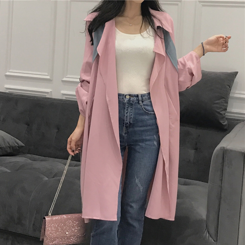 寬松長袖風衣女中長款秋冬裝新款韓版chic學生時尚外套拼色大衣潮
