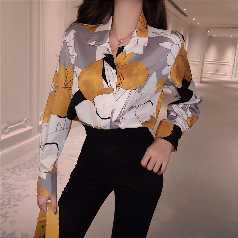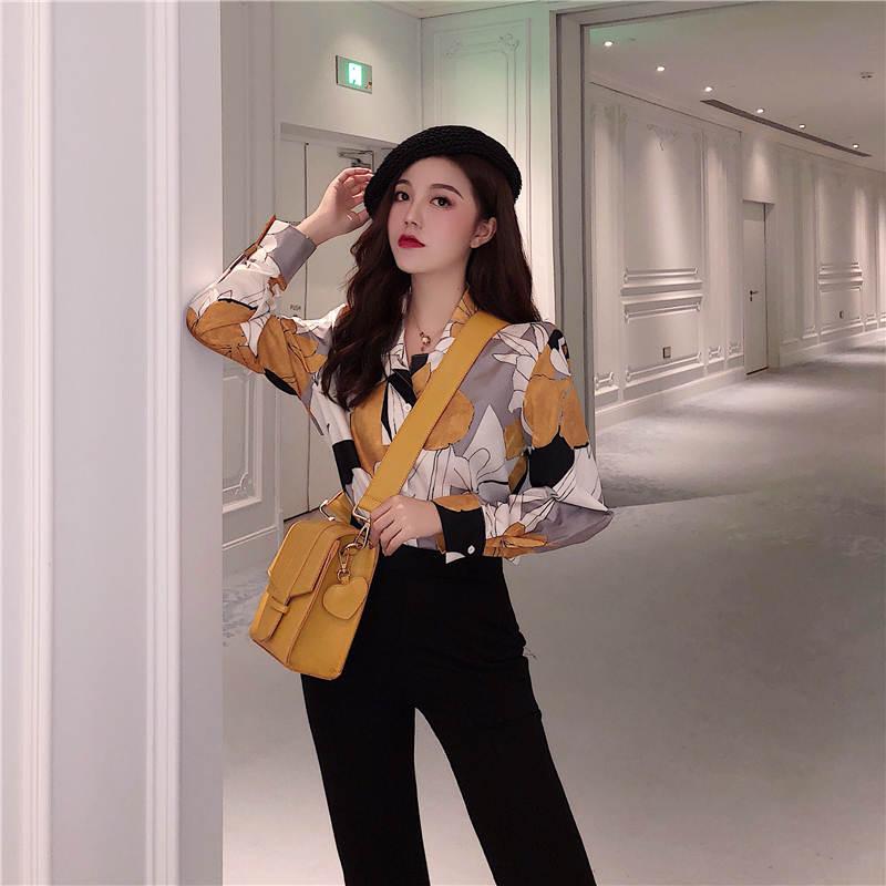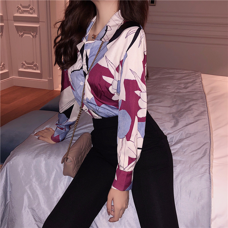 chic早秋上衣女2018新款韓版復古港風寬松長袖顯瘦時尚氣質花襯衫