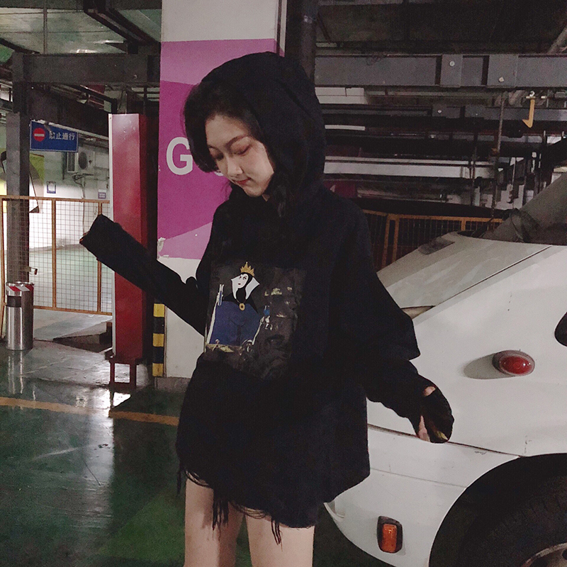 / 秋裝女2018新款復古時尚白雪公主印花oversize連帽衛衣女寬松上衣