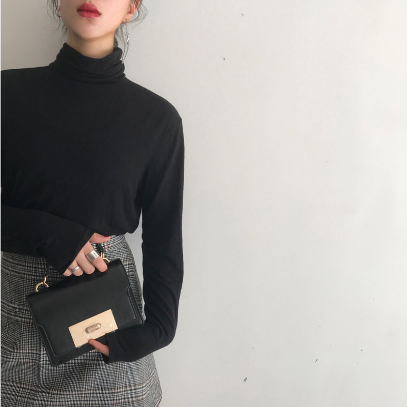 初秋新款女上衣韓版時尚chic基礎款百搭顯瘦高領純色打底衫t恤女