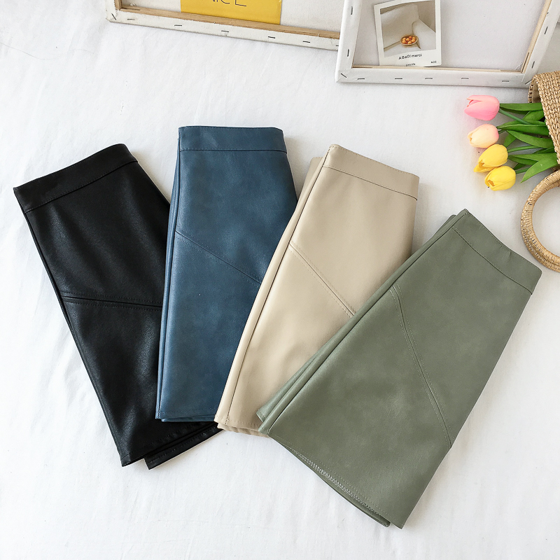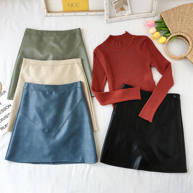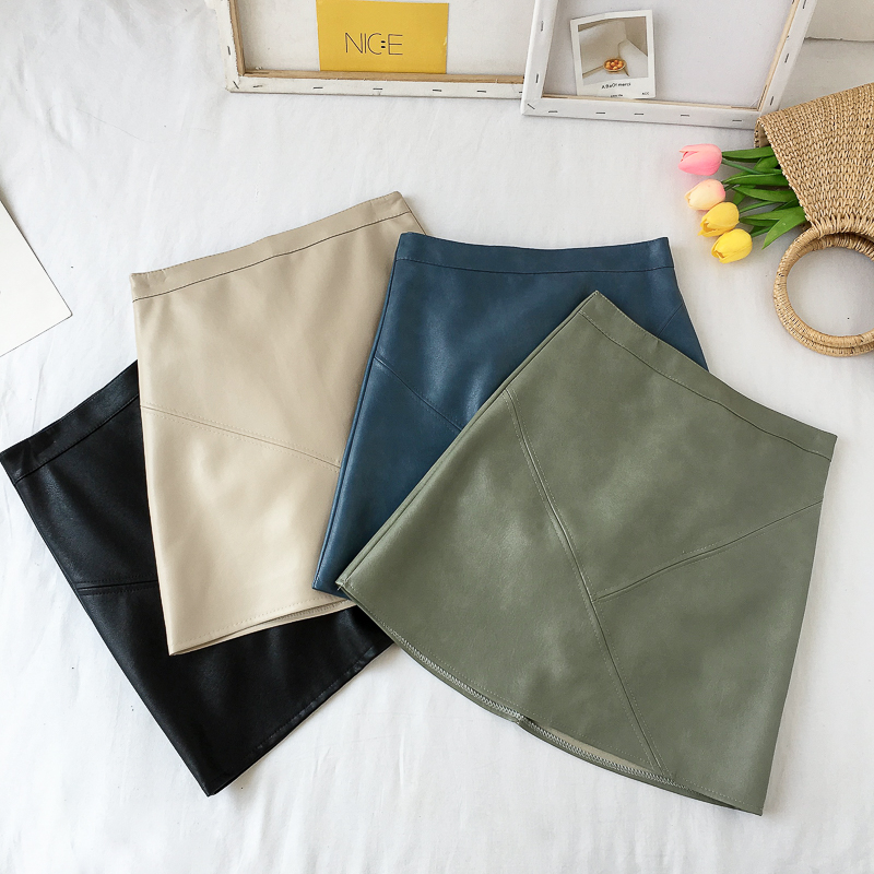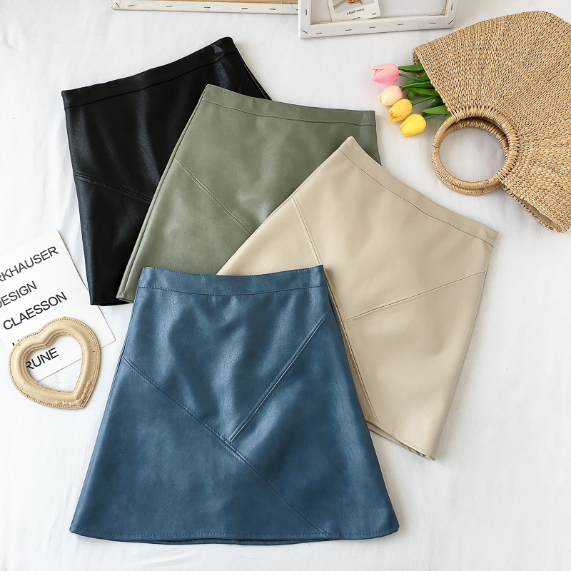 秋裝女2018新款韓版復古百搭拼接pu皮裙顯瘦高腰短裙半身裙A字裙