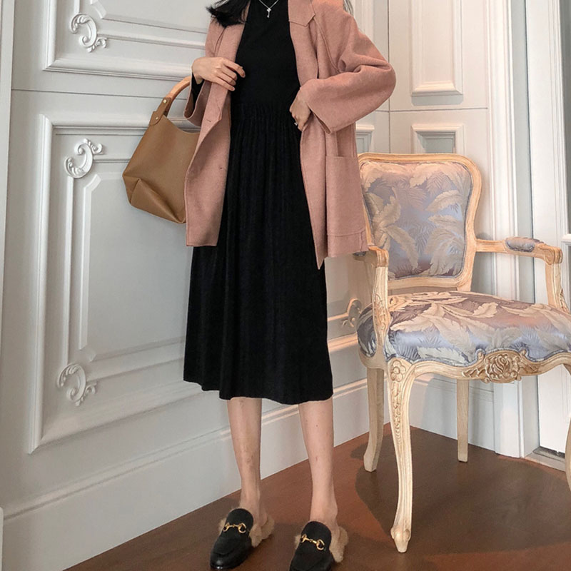 馬海毛網紅毛衣女2018新款針織開衫外套冷淡風針織吊帶連衣裙套裝