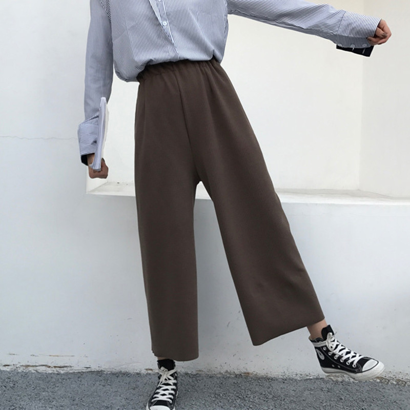 / 闊腿休閑褲秋裝女2018新款復古高腰直筒黑褲子學生時尚寬松九分褲