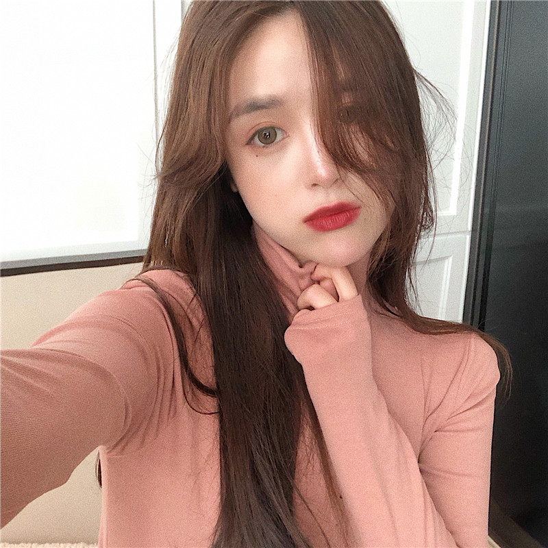 初秋新款女上衣韓版時尚chic基礎款百搭顯瘦高領純色打底衫t恤女
