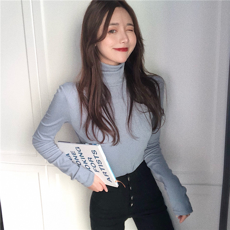 / 秋冬2018新款韓版百搭高領長袖體恤上衣修身顯瘦純色打底衫女學生