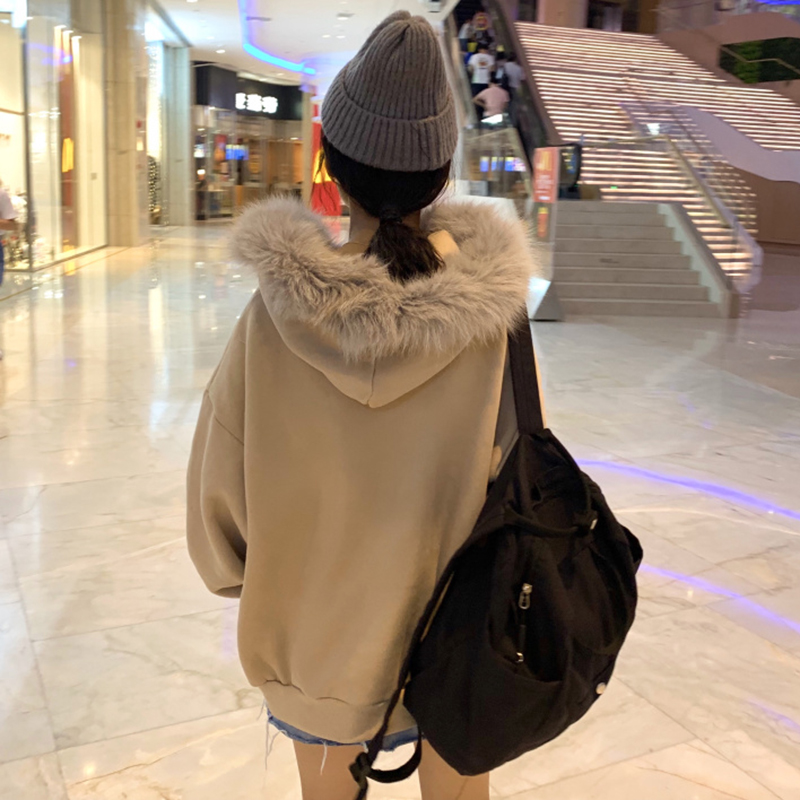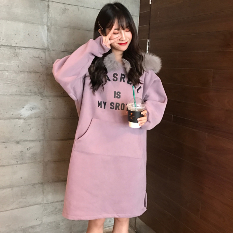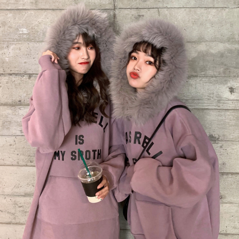 學院風大毛領連帽衛衣女秋冬裝2018新款韓版中長款寬松字母外套潮