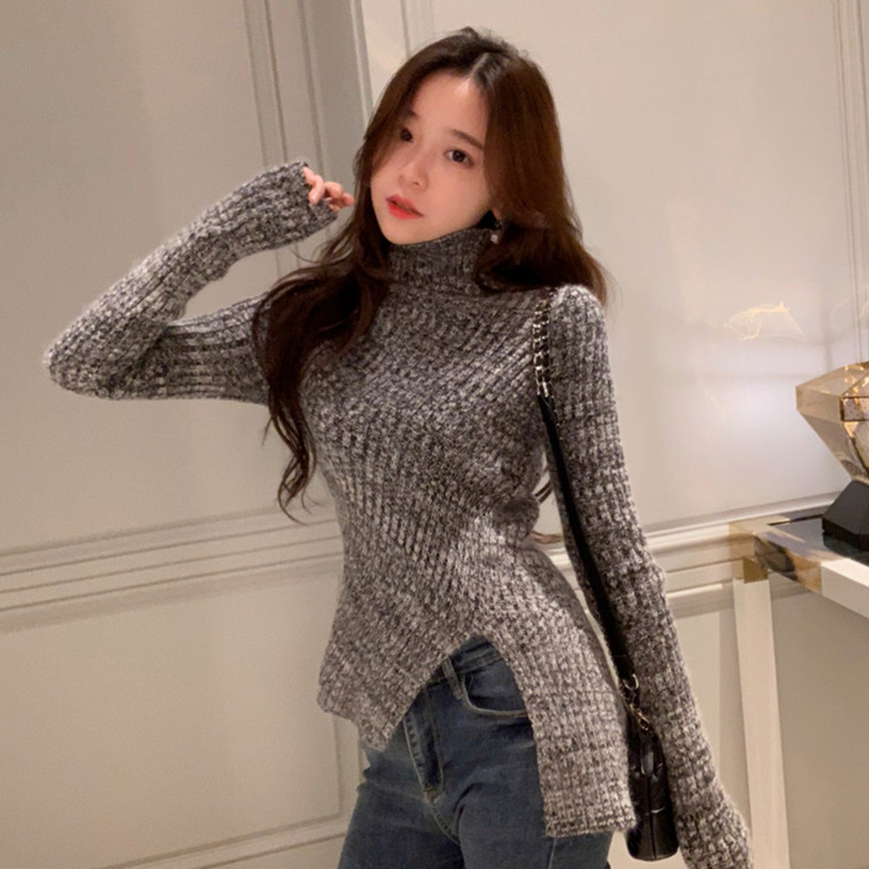 / 原宿毛衣女秋冬裝2018新款不規則開叉修身長袖學生高領打底針織衫