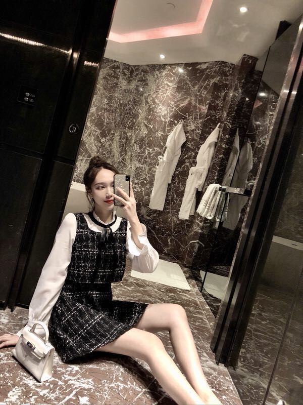 / 2018秋裝新款韓版顯瘦氣質小香風長袖假兩件裙子呢子套裝連衣裙潮