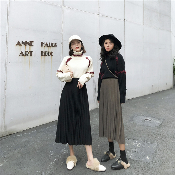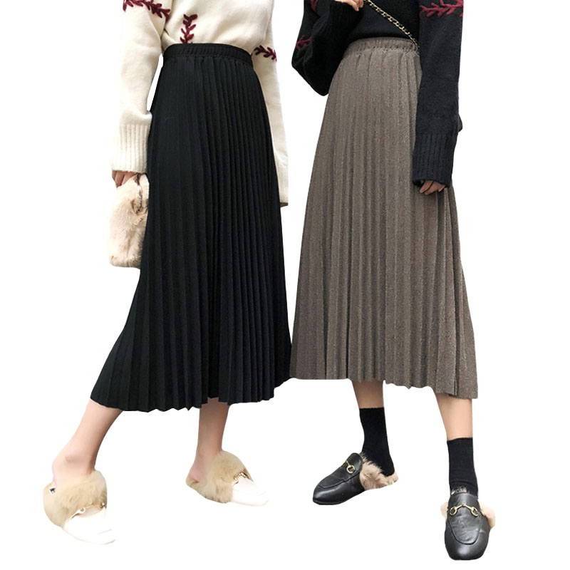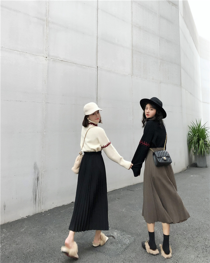 / 秋冬韓版寬松中長款百褶裙半身裙高腰蓬蓬裙a字裙長裙學生裙子女