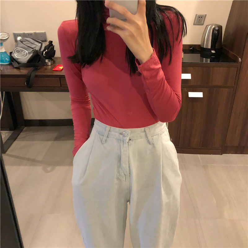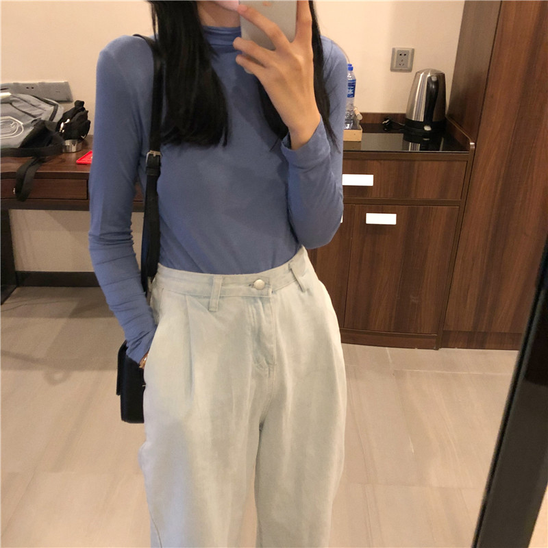 / 秋冬2018新款簡約基礎款純色彈力中領打底衫女修身顯瘦長袖體恤女