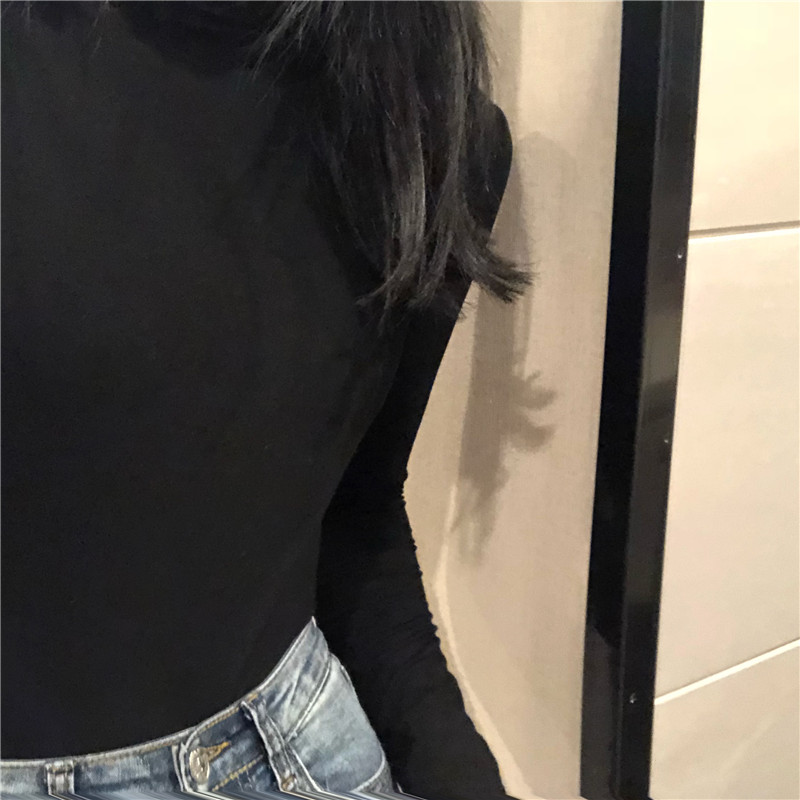 秋冬2018新款簡約基礎款純色彈力中領打底衫女修身顯瘦長袖體恤女